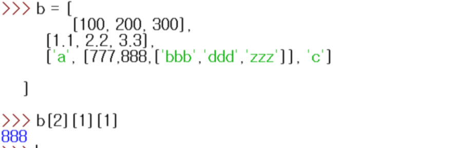 아래와같이 list안의 list에도 접근할수있다는 특성이있다.