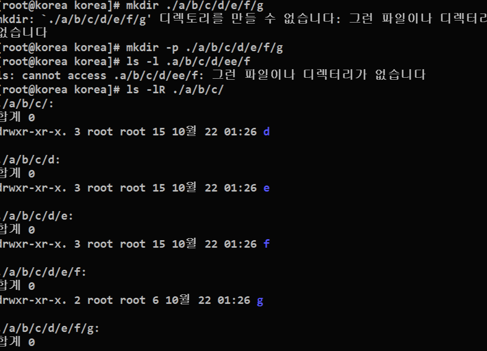 mkdir -p ~ --> 상위 새경로까지 한번에 생성.