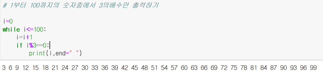 # 1부터 100까지의 숫자중에서 3의배수만 출력해보세요