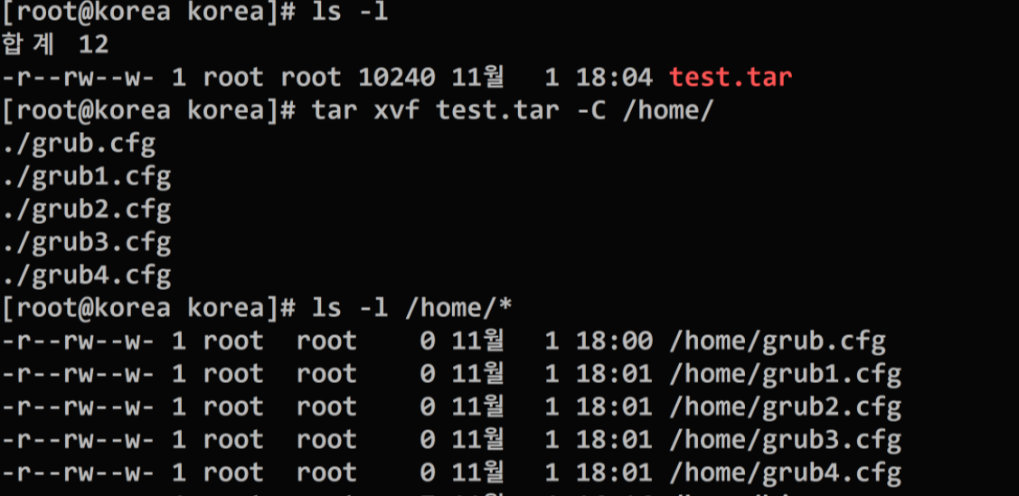 + 추가로, tar 를 풀어줄떄, -C 옵션을 통해서, 풀어줄 경로를 지정해줄수도있다.