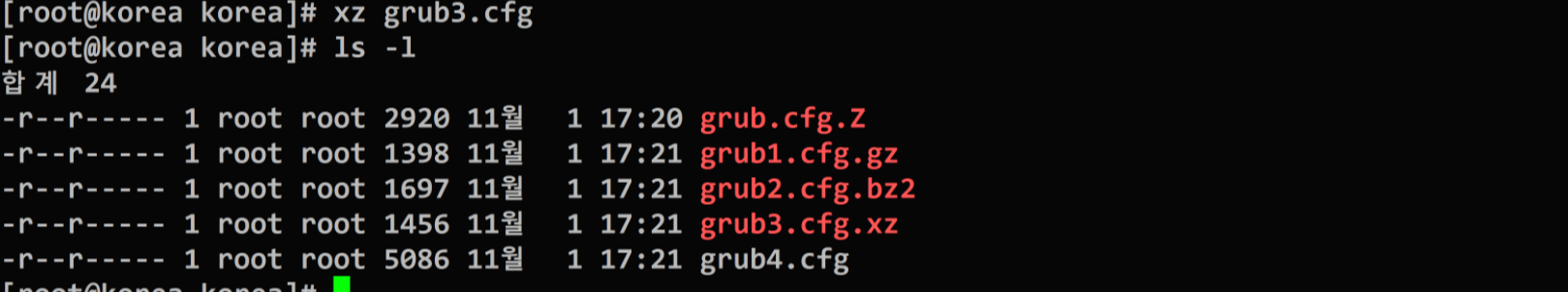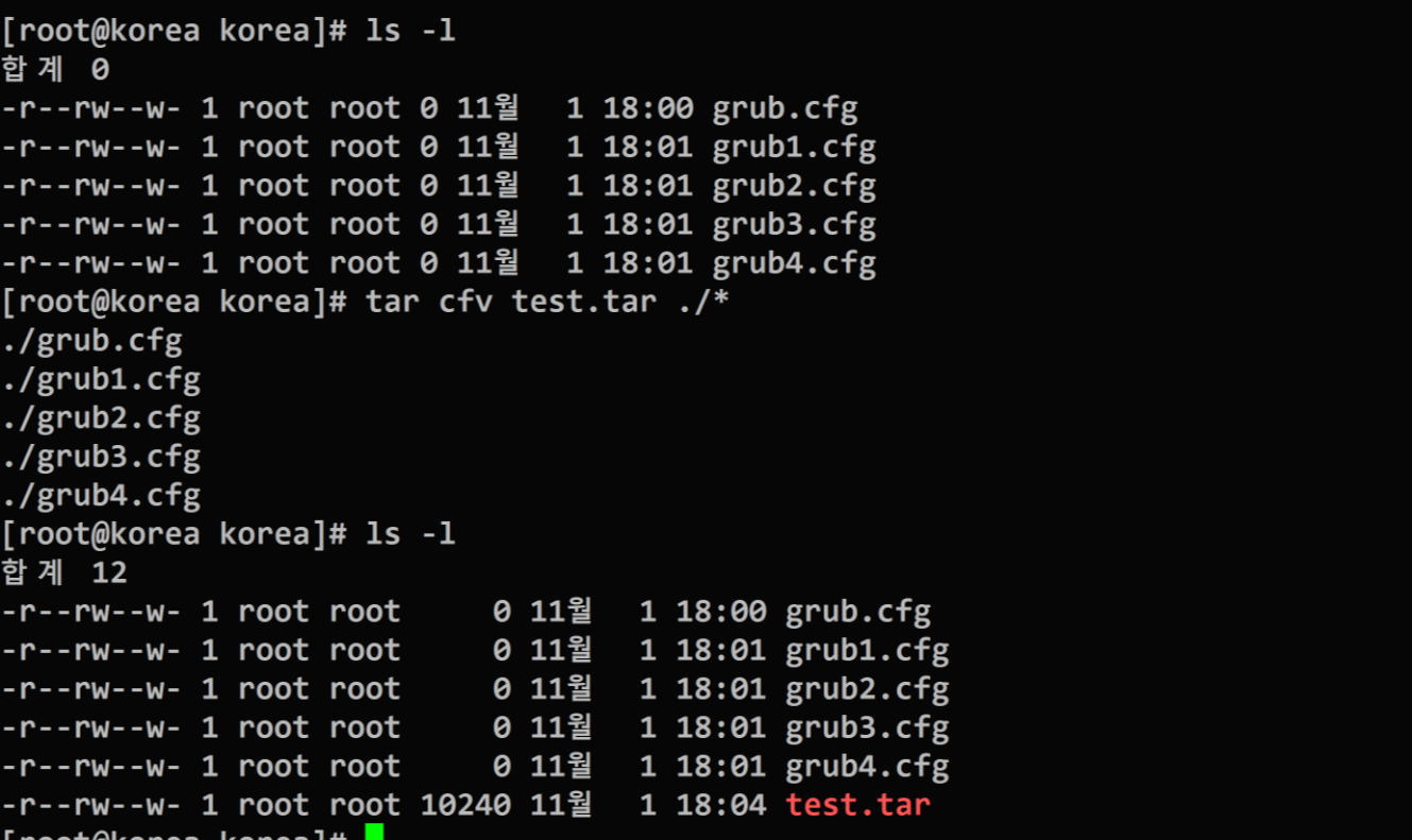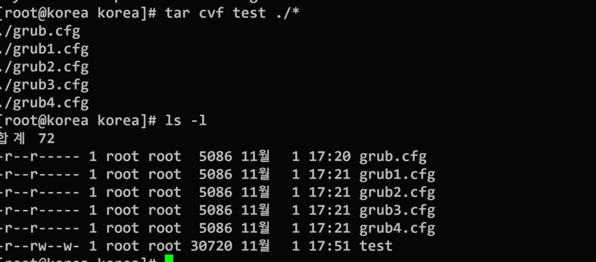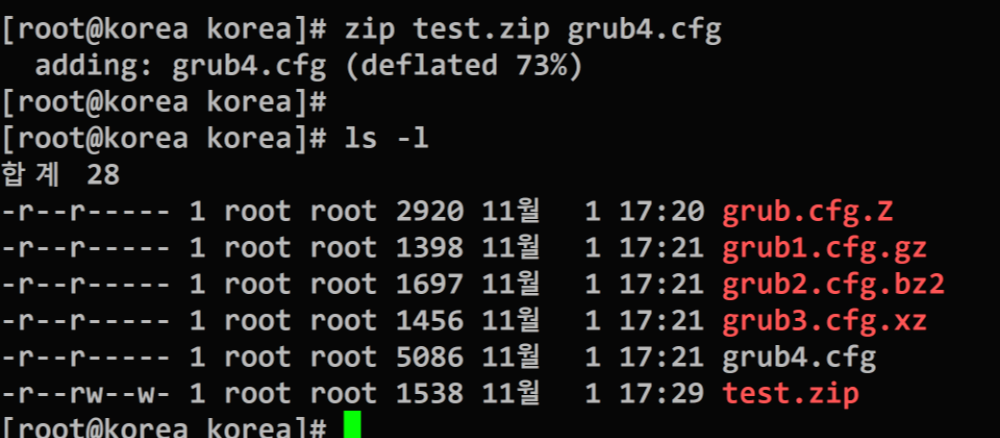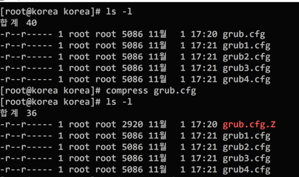 ex) grub~ grub4를 묶어서 명령어로 압축해도 같은형식으로만 각각 압축된다.