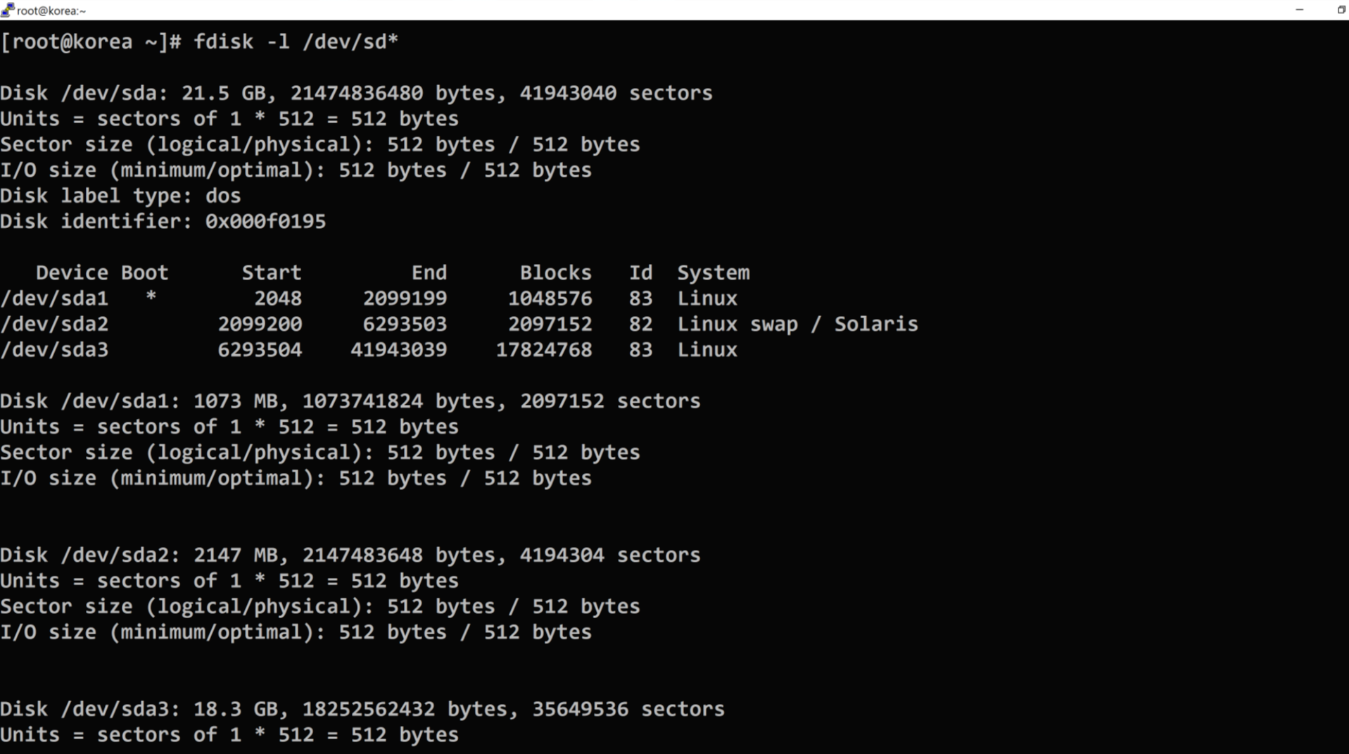 fdisk -l /dev.sd* == SCSI HDD 확인하기