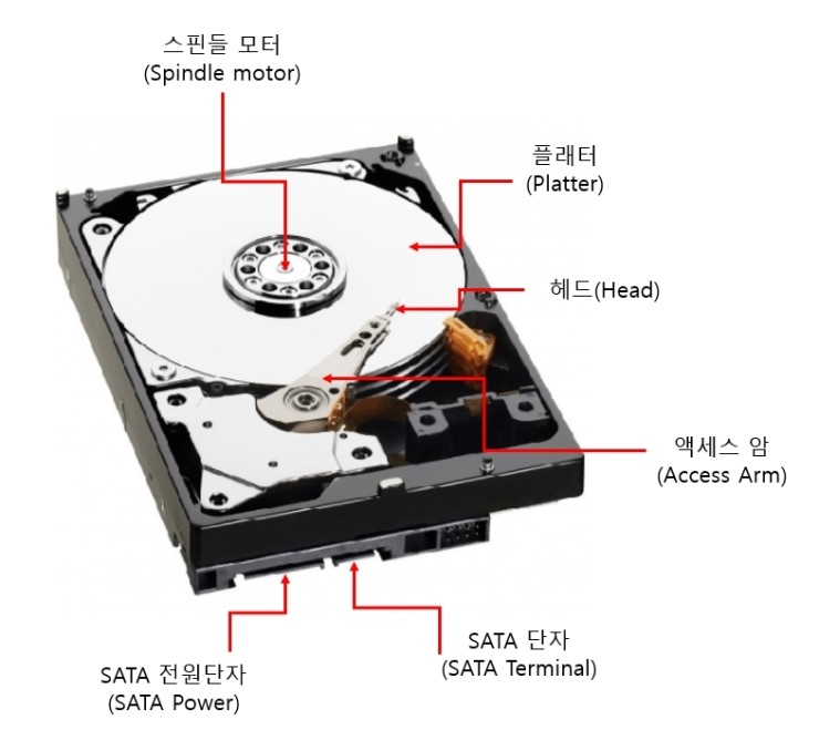 --> 플래터가 빨리 돌아갈수록 원하는 데이터를 더빨리 뽑아낼수있다 (= 하드디스크의 성능이 더 좋다 )