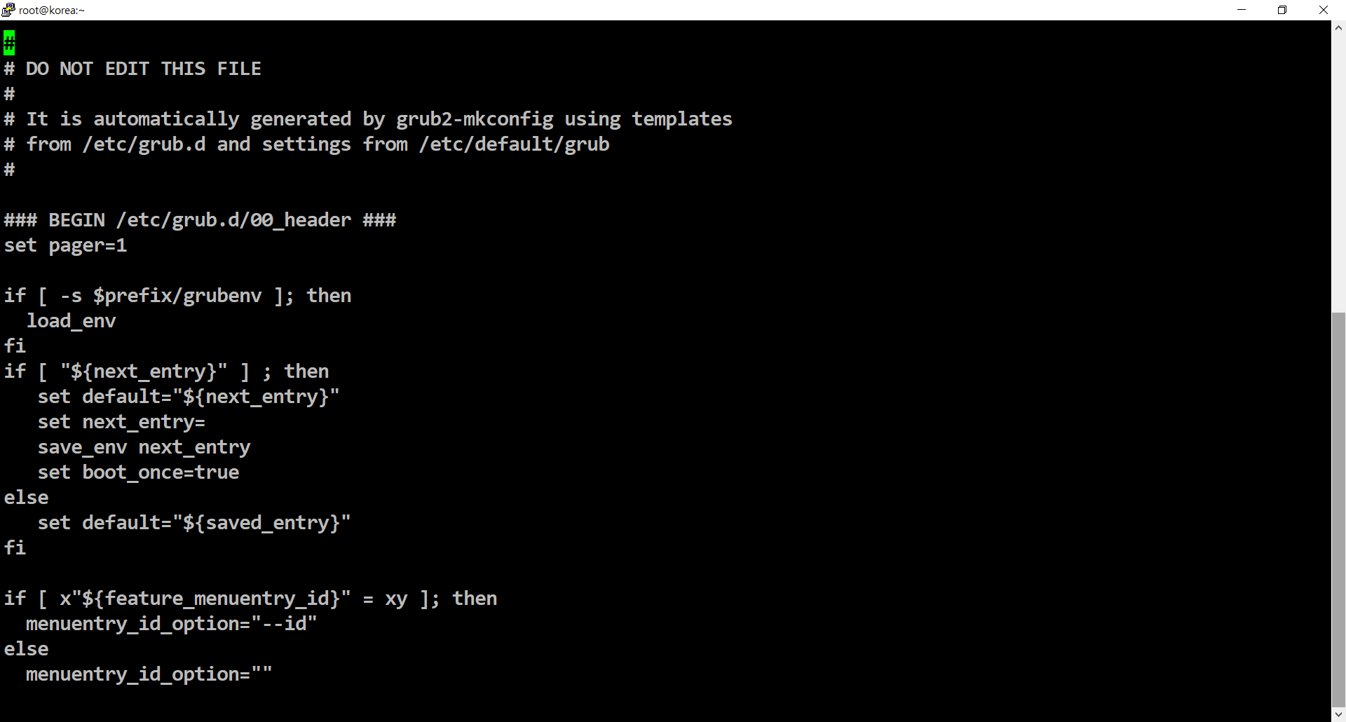 vi /etc/grub.d/00_header 파일 맨마지막에 아래의 라인들을 작성