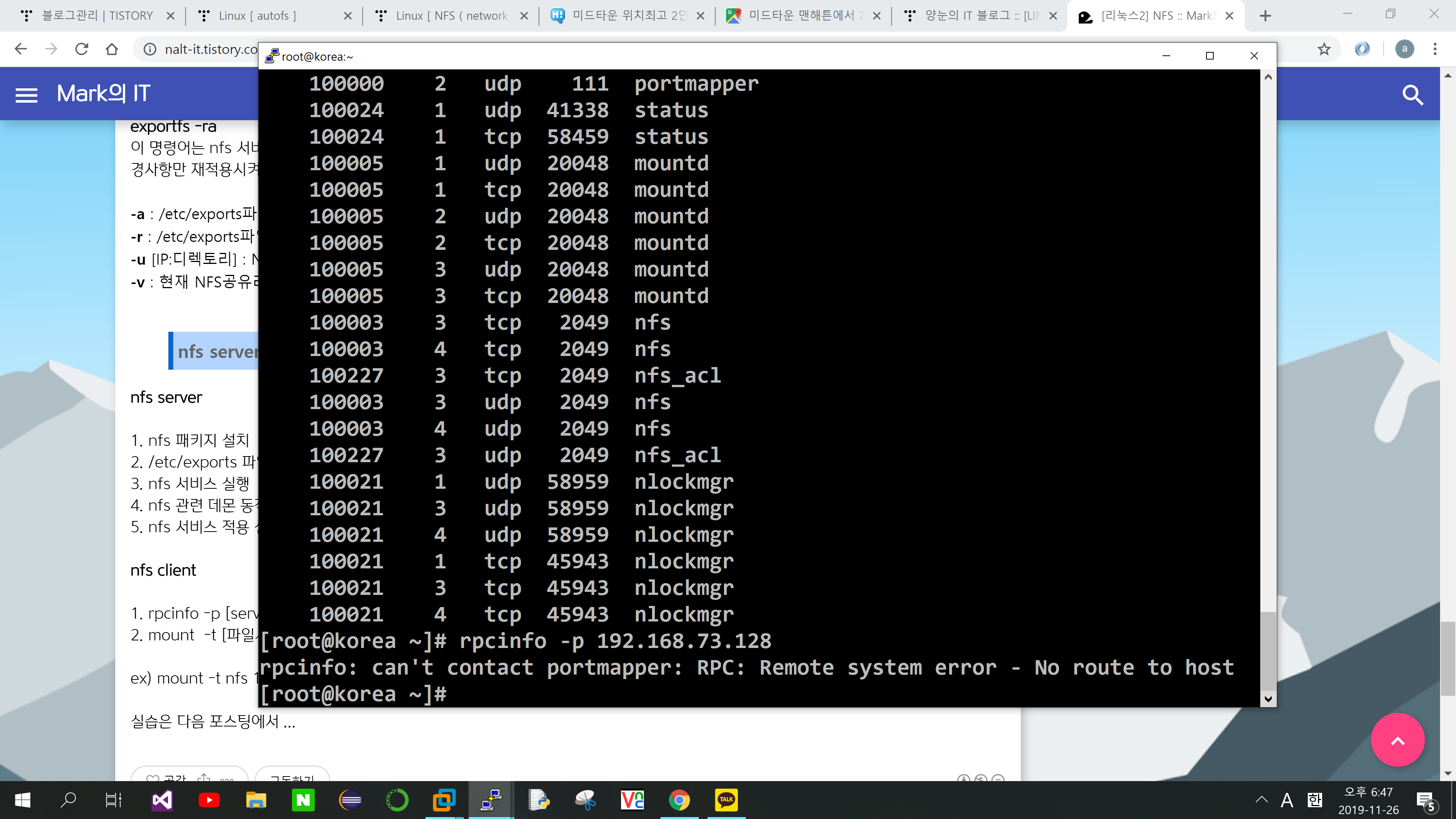 | Linux [ NFS ( network file system ) ] (0) | 2019.11.25 |