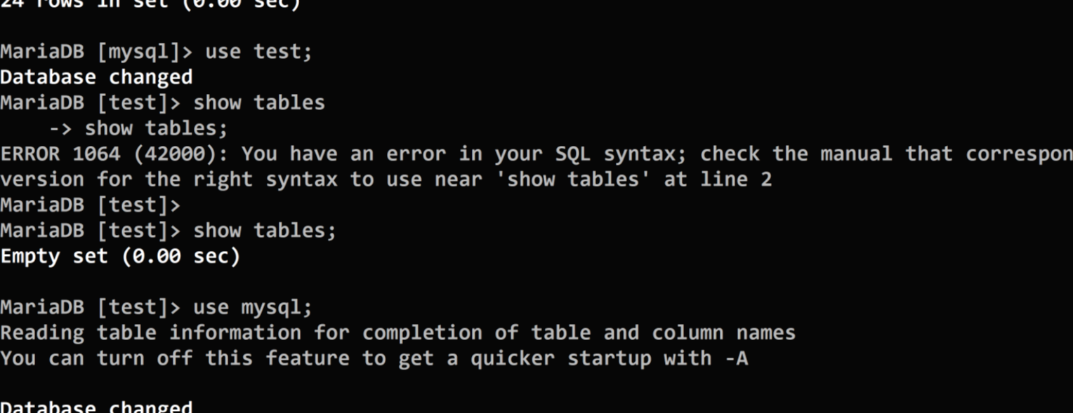 --> DB 서버 내에서는 언어문 작업을할떄에는 항상 ;(세미콜론) 을 붙혀주어야한다.