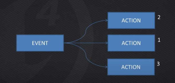 UE3의 경우 아래와 같이 EVENT에 대한 Action의 순서가 보장되지 않았다.