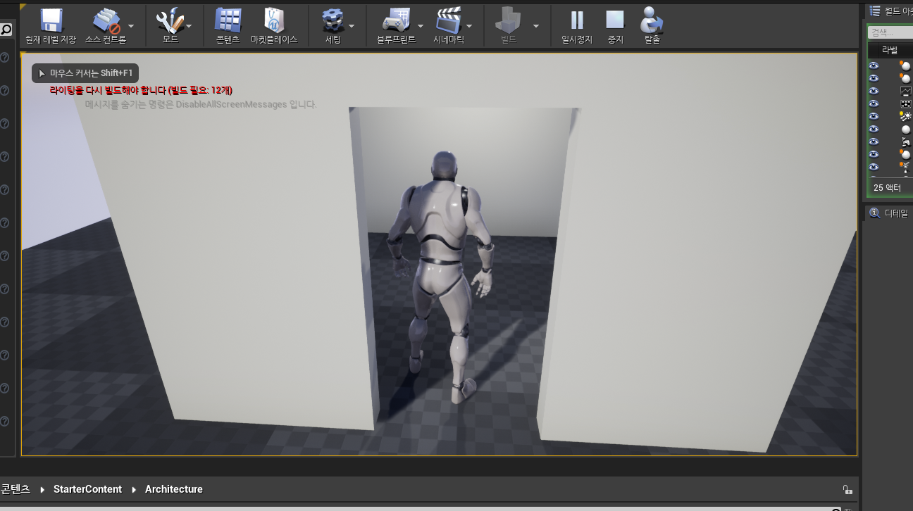 컴파일을 완료하였다면, 시작전, 아래와 같이 Player의 시작포인트를 방밖으로 꺼내준다.