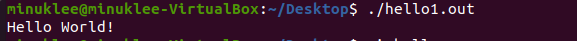 6. ./hello.out 입력후 파일안의 내용이 정상 실행되는것을 확인가능
