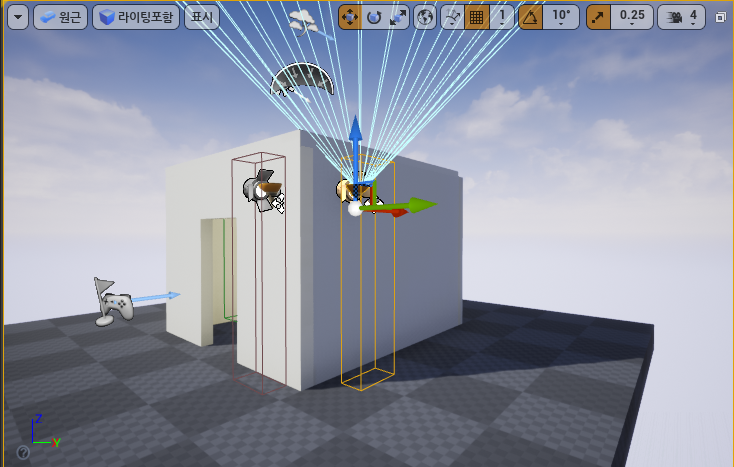 이번 시간에는, 플레이어가 이 Trigger Volume안에 들어갈수 있게 만들어보도록하겠습니다. 또한 이전처럼 단순히 볼륨에 들어가야 불빛이 켜지는것이 아니라, 특정 버튼을 눌러서 시행하도록 해보겠습니다.