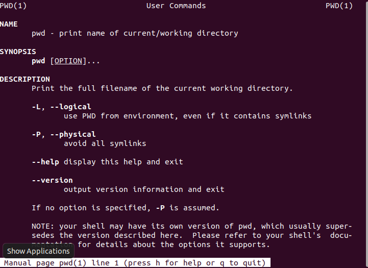 -> man pwd