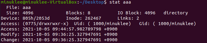 stat ~~ : 파일 및 폴더의 정보