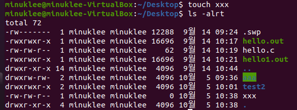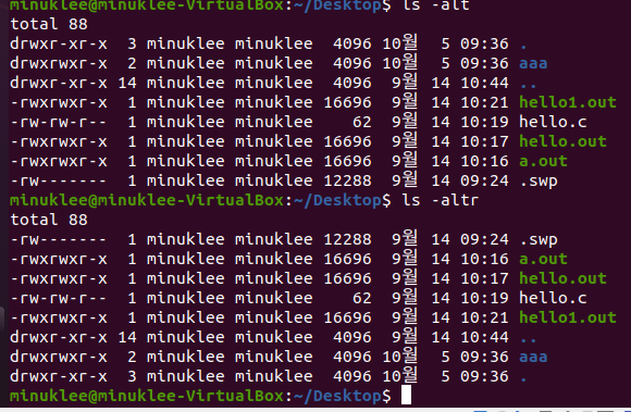 ls -altr : (reverse) : 날짜 반대로 정령 ( 최근순 )