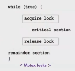 peterson's solution, atomic 등등 .. 매번선언할수없으니, 뮤텍스락을 제공해줌