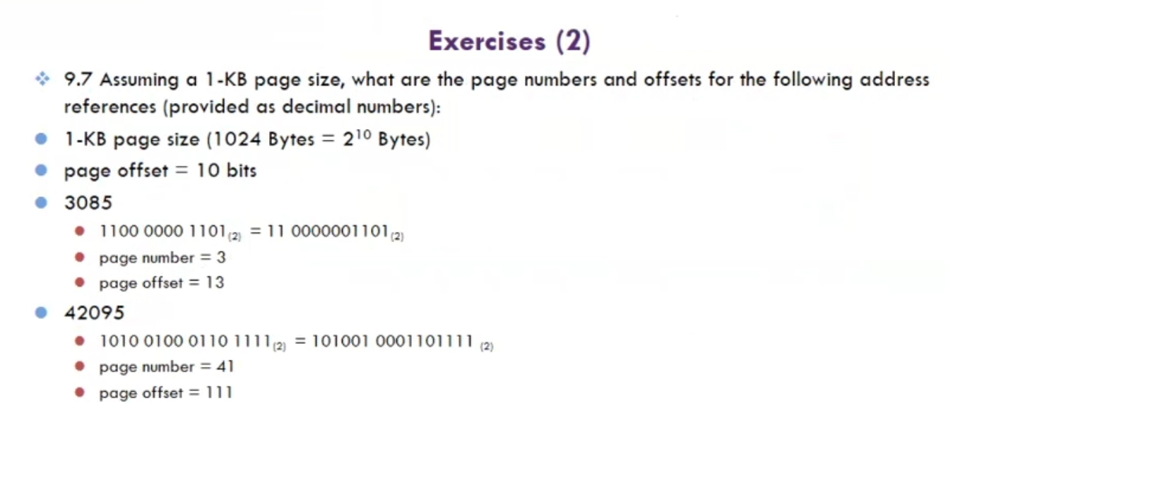 문제의 요점 : page number(address thread에 참여) 와 page offset (참여 x)
