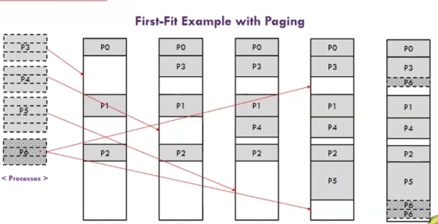 : 프로세스를 페이지단위로 전부 나눔 -> 이후에 페이지별로 메모리를 전부 할당해줌 (불연속적으로 할당)