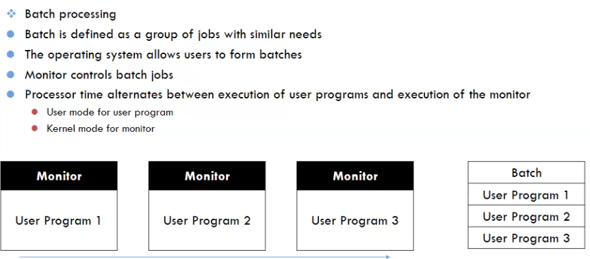 - Batch 프로세싱 ( 한번에 프로그램들을 묶어서 작업 ) [ 커널모드 / 유저모드 ]
