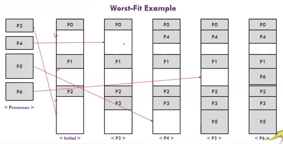 -> 프로세스를 할당할떄, 하나의 프로세스가 하나의 Hole에 들어가야한다고 가정하고있기떄문 . .