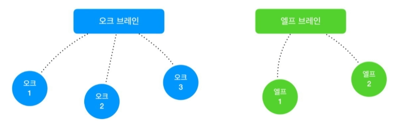 ex) 브레인 = 종족, 에이전트 = 개별 캐릭터