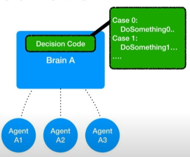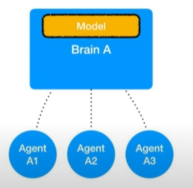 또한 하나의 브레인은 동시에 여러개의 에이전트의 정보를 받고 여러개의 결정을 동시에 내릴수있다.