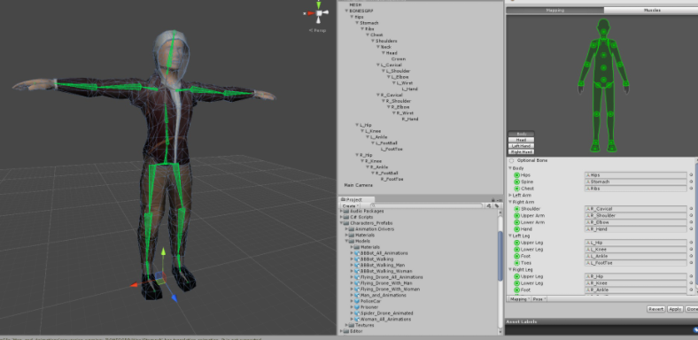 Project View에서 생성할수있으며, 신체부위를 활성/비활성화하여 animation 재생에 대한 제어를 할수있다.