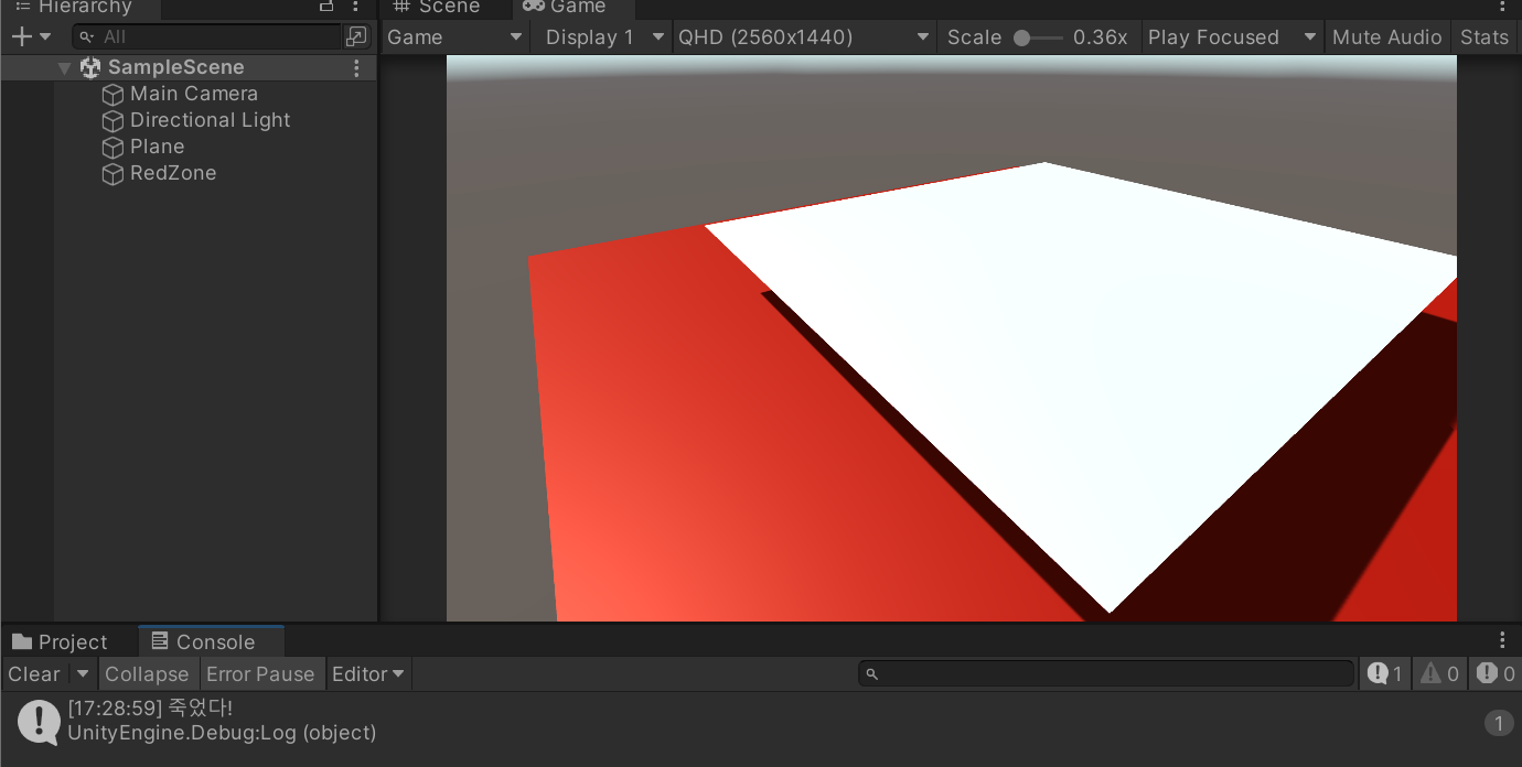 Debug.Log("죽었다!");