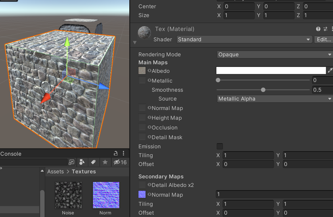 일반 큐브에 Alebo를 적용하고 Normal Map에 Texture를 적용하였을떄