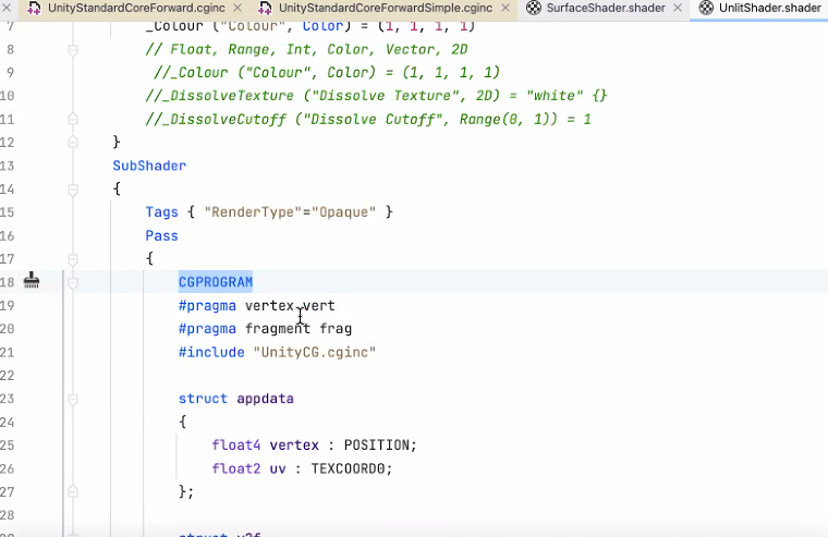 아래와 같이 CGPROGRAM 을 적어주면 그아래로 해당 함수들을 선언 및 사용하겠다는 뜻이다.