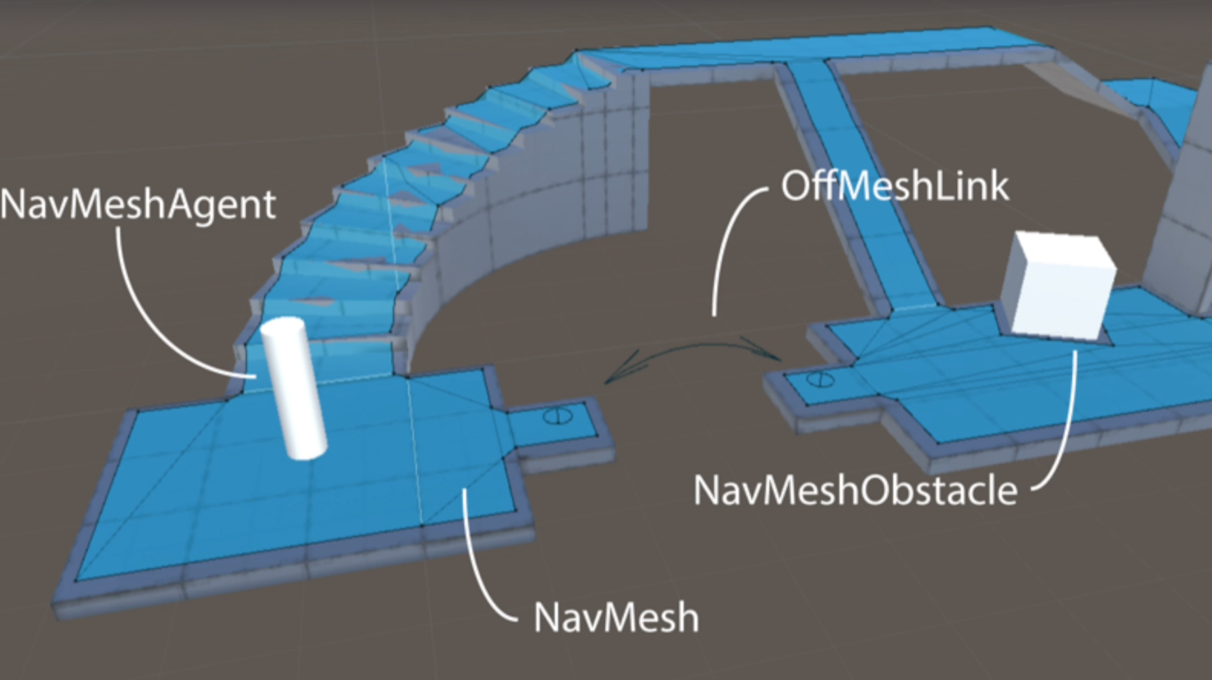유니티는 한위치에서 다른위치로서의 거리를 자동으로 계산하고, 실시간으로 장애물을 피하며 이동하는 위의 네가지 네비게이션을 제공한다.