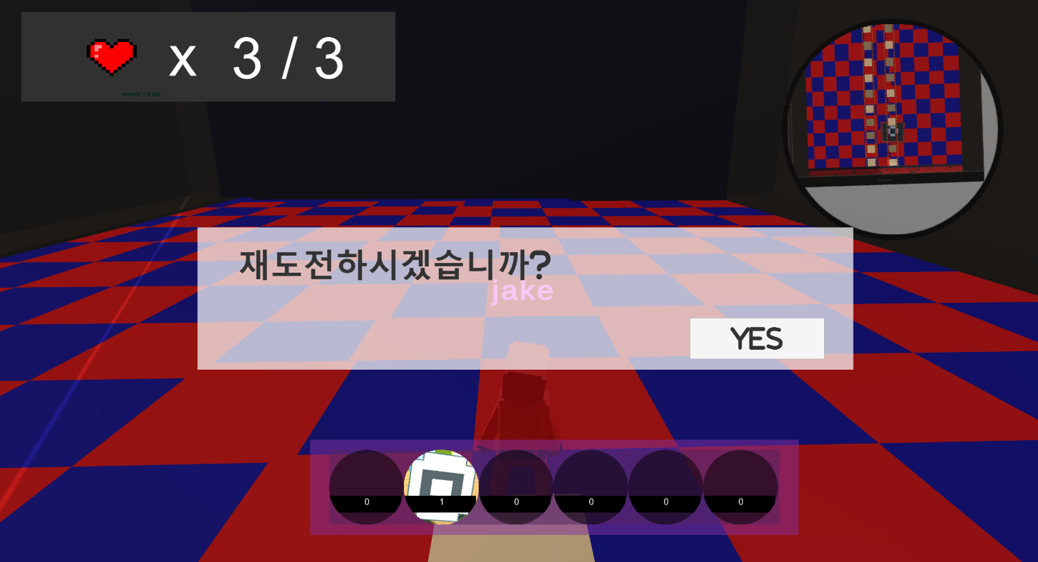 이후 3번의 기회동안 떨어진 타일을 피해 통과하게되면 게임이 종료된다.