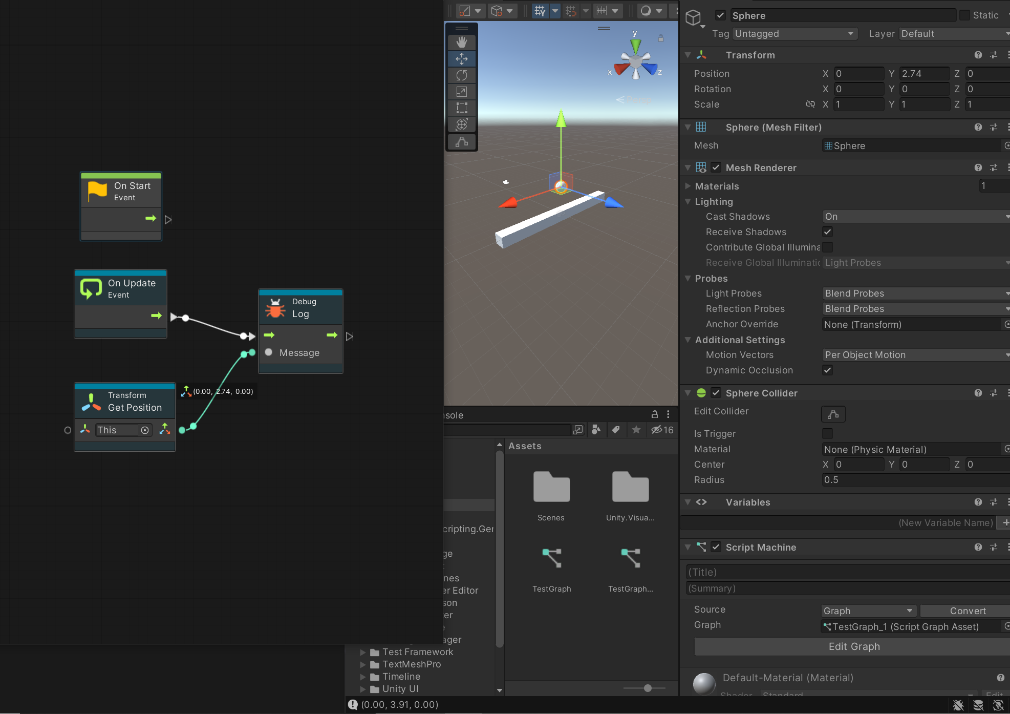 유니티에서는 스크립트를 사용하지 않고도 기능 구현이 가능한 비주얼스크립팅이 존재한다. 21년버전부터는 유니티가 해당 기능을 제공하는 Bolt사를 인수하여 언리얼엔진의 BluePrint와 같이 제공하며 이전버전에서는 외장 설치를 통해 사용할수있다.