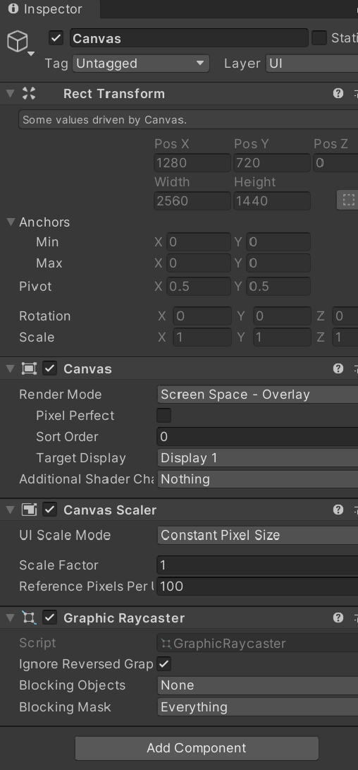 UI는 Canvas에 Graphic Raycaster라는 것이 있어서, 이것이 UI의 모든 포인터 이벤트를 관리한다.