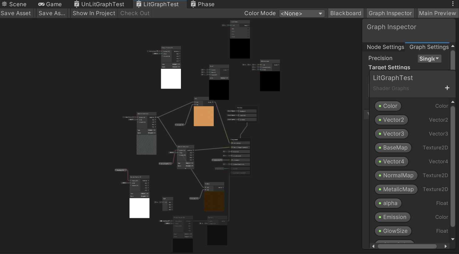 그리고 유니티 쉐이더는 비주얼 스크립팅과 같은 GUI 환경에서의 작업을 지원하는 Shader Graph가 존재한다.