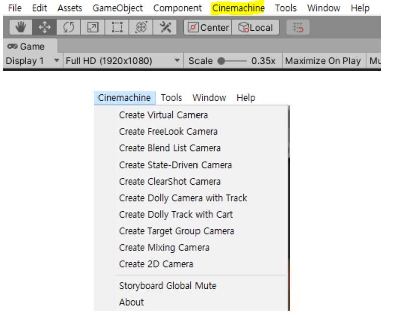 시네머신은 영화 촬영을 하는 것처럼 씬을 촬영하여 게임 화면상에 비추어주는 유니티 패키지이다.