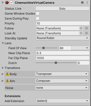 Body : 씬 내부의 버추얼 카메라가 움직일 때 따라가는 알고리즘 설정을 변경한다.
