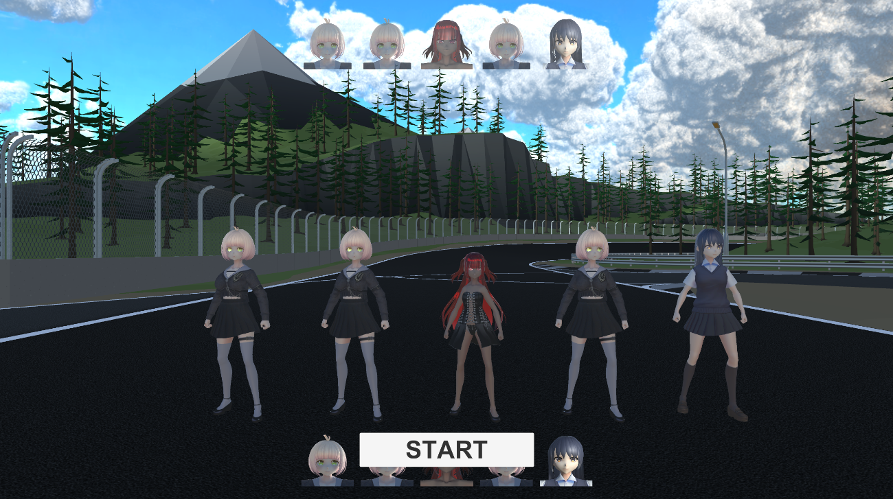 아래는 캐릭터 선택 후, 초기 플레이화면이다. 최초의 플레이 선택홤녀에서 쓰였던 시네머신Cam에서, 플레이 전체를 비추는 Cam과 선두 플레이어를 비추는 Cam의 전환을 코루틴을 두어 우마무스메와 같은 기능을 구현하였다 .