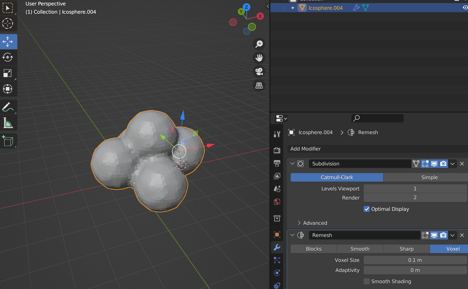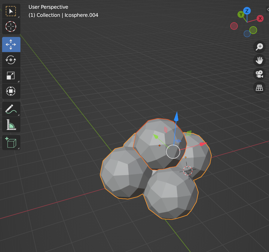 블랜더를 통해 Sphere를 아래와 같이 뭉쳐준 후, 아래 순서와 같이 Surface를 다듬어서 파티클 머터리얼로 쓰이게 될 FBX파일로 Export해준다.