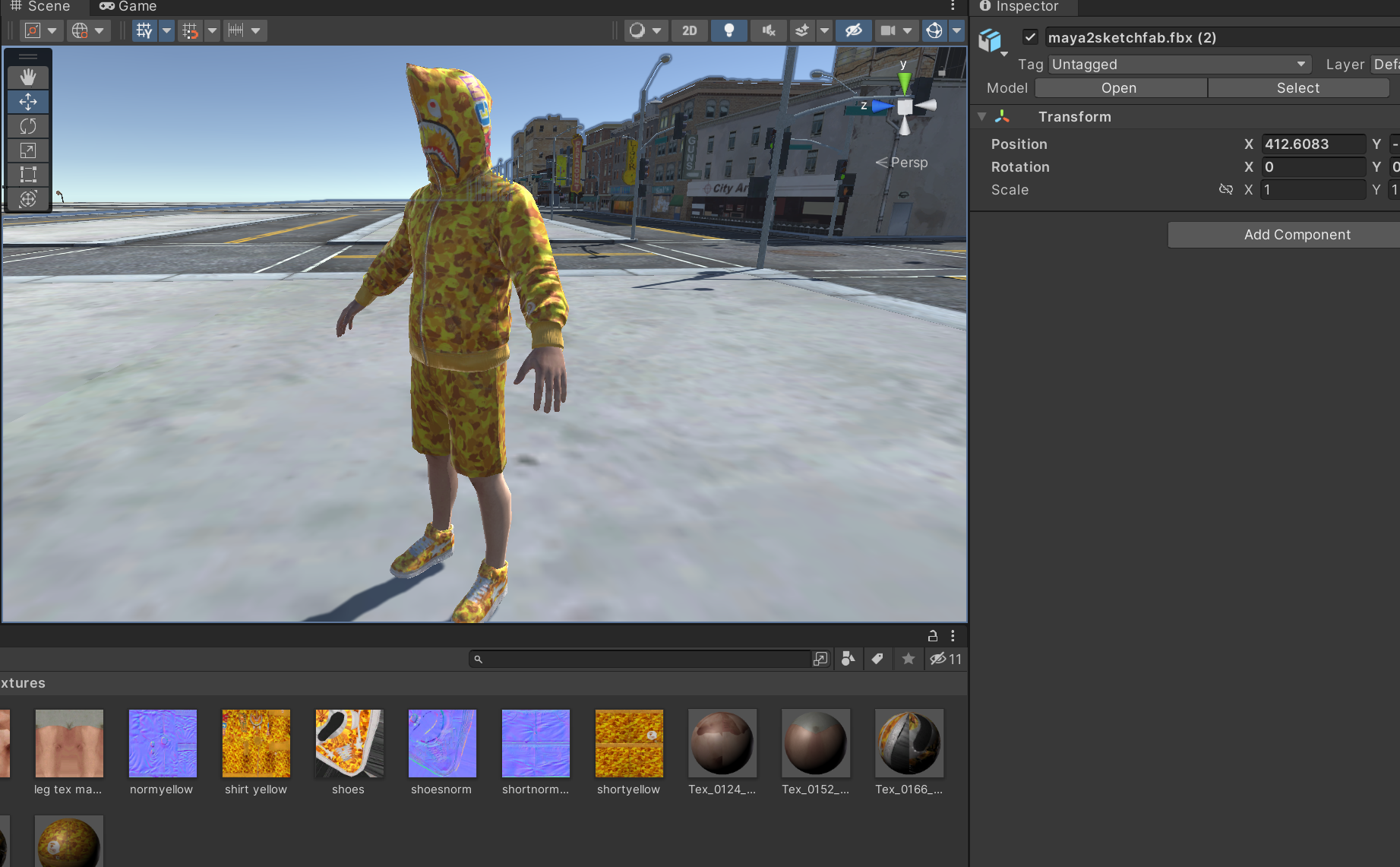 fbx 형태의 에셋을 다운받아 유니티상에 임포트하는 과정에서 아래와 같이 mesh renderer가 안쪽으로 말려들어가서 Material을 입혔을시 부자연스럽게 적용되는 모습을 확인하였다.
