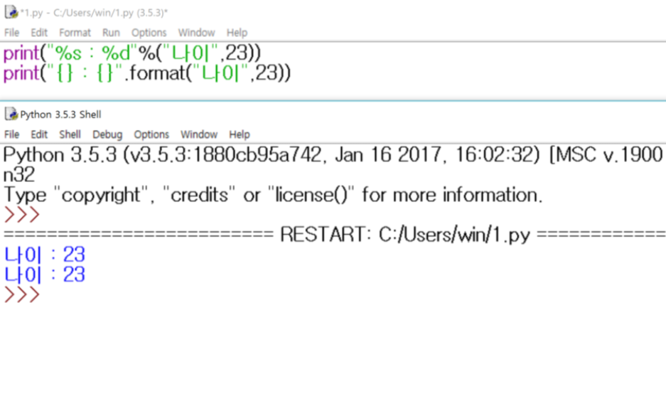 당연한 애기지만, format 함수에서도 c스타일과같이 변수의 개수가 대응되어야하며, 그렇지않을경우 오류가발생한다.