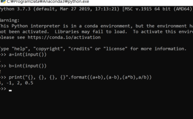 1. input 으로 두개의 값을 저장한 후에, 두값의 더하기, 뺴기, 곱하기, 나누기 값을 출력해보자.